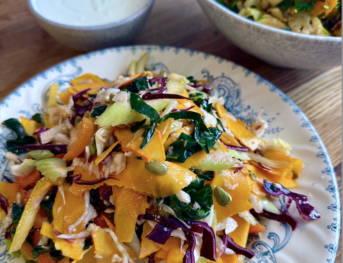 - Mix the black cabbage with everything else including the pumpkin seeds and good drizzle of olive oil.